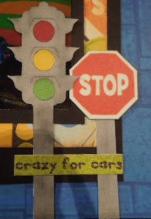 Today I have a Lo of my son on a car ride at the county fair. He is 5 years old and he still enjoys kiddy rides which makes me so happy. I used BoBunny Paper On the go. The traffic Light cut out was cut with my Cameo it is one of their files and I just added a pole. I love how it turned out. The stop sign is a cut out from the BoBunny paper. Super adorable.